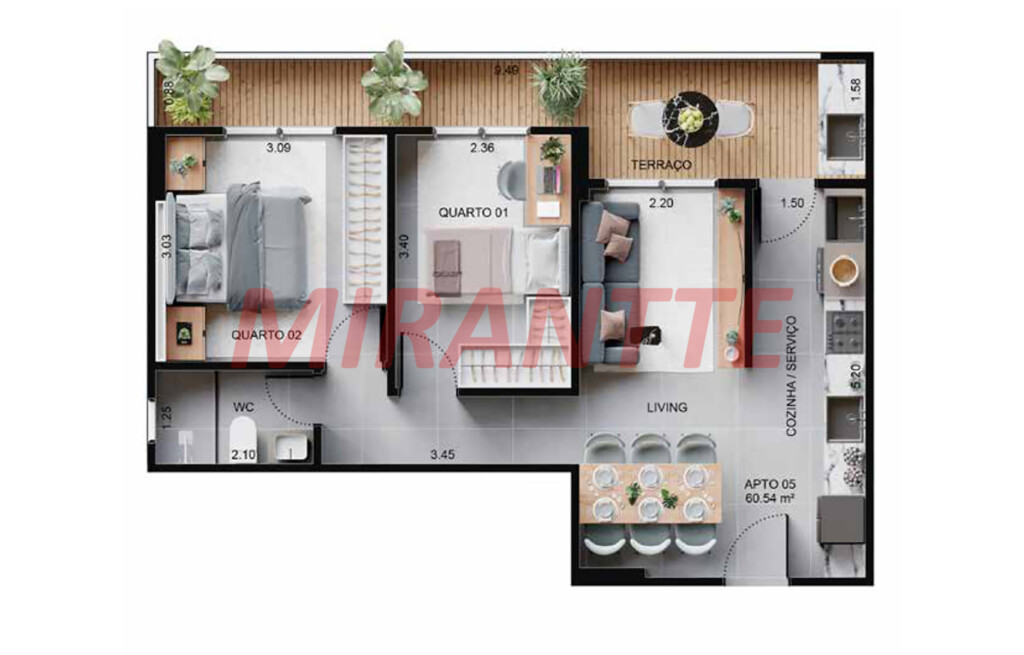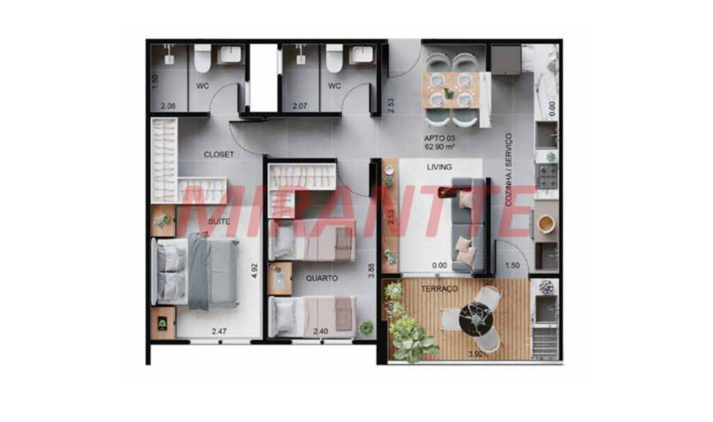 Apartamento de 62m² com 2 quartos em CENTRO