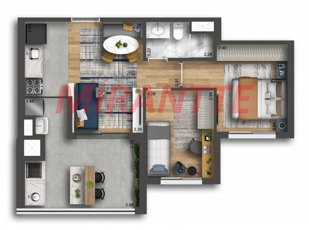 Apartamento de 49m² com 2 quartos em Nova Klabin