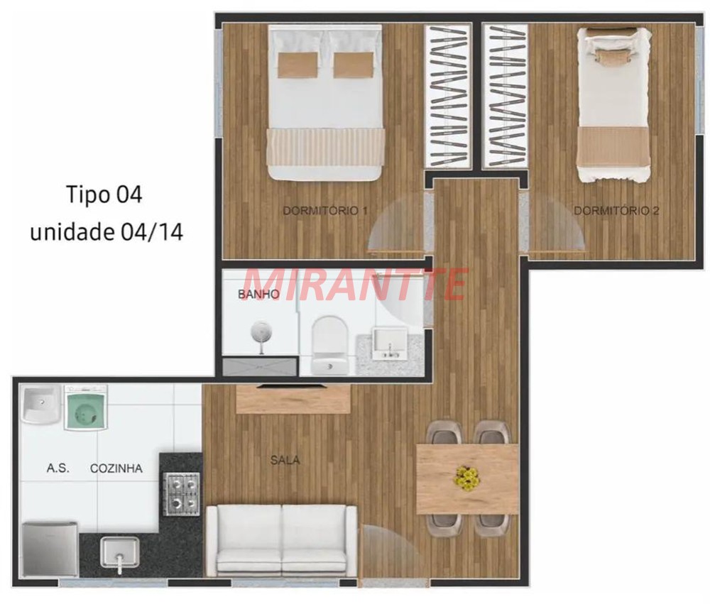 Apartamento de 41m² com 2 quartos em Parque Peruche