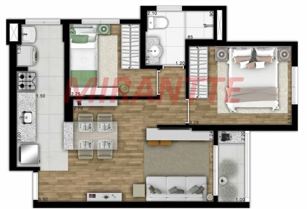 Apartamento de 45m² com 2 quartos em Vila Galvão
