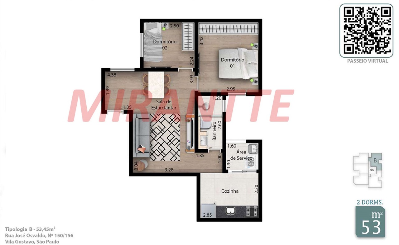 Apartamento de 53.45m² com 2 quartos em Vila Gustavo