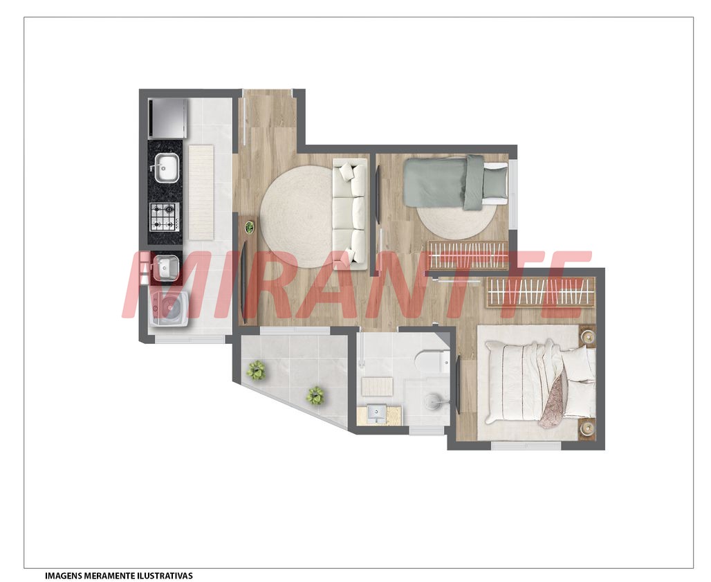 Apartamento de 35.7m² com 2 quartos em Vila Gustavo