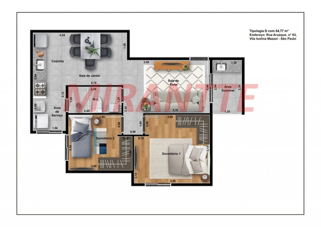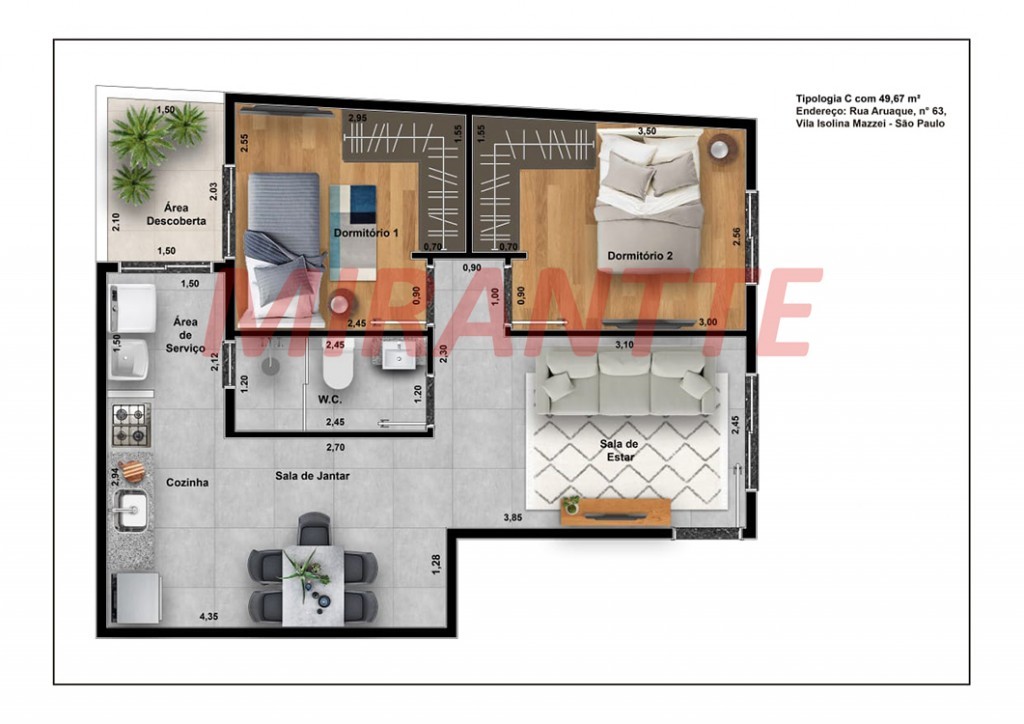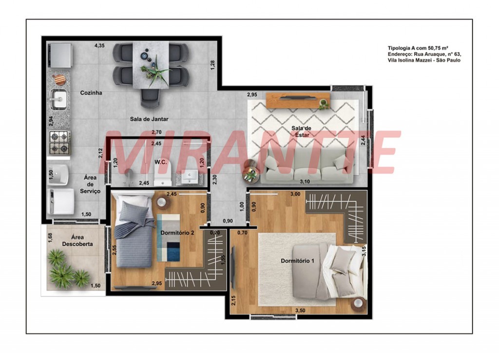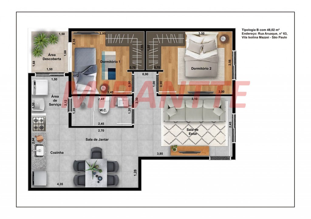 Apartamento de 48m² com 2 quartos em Vila Isolina Mazzei