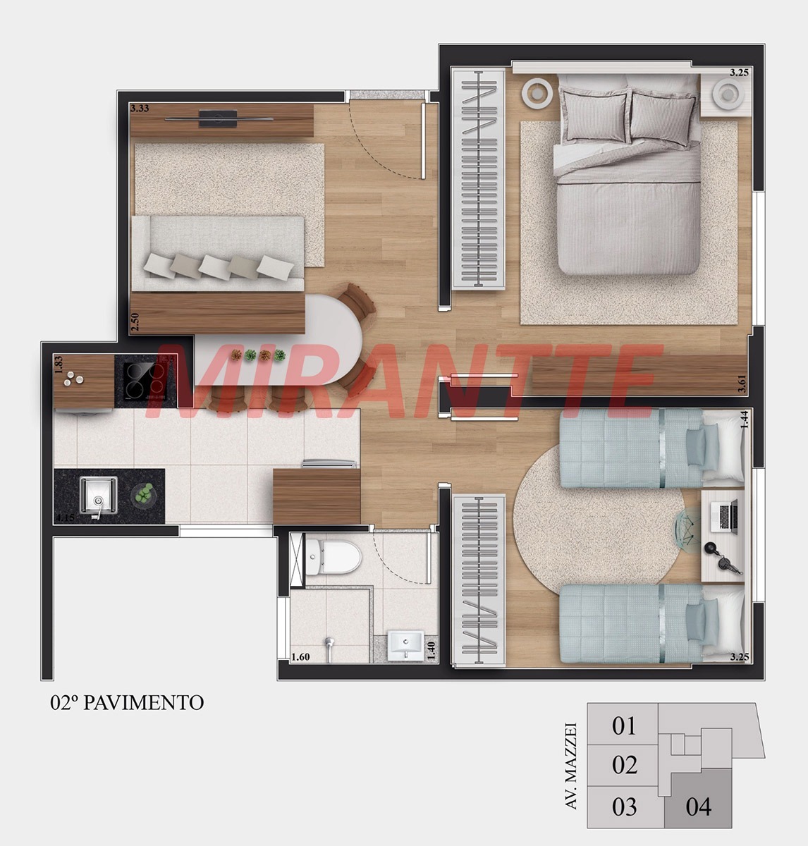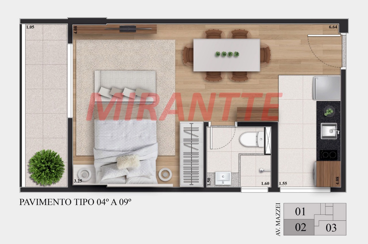 Apartamento de 38.44m² com 1 quartos em Vila Mazzei