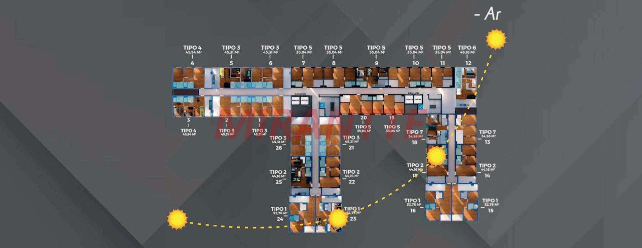 Apartamento de 34.58m² com 2 quartos em Vila Mazzei