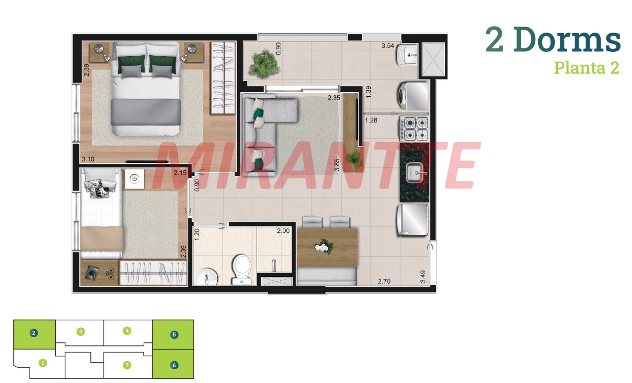 Apartamento de 38m² com 2 quartos em Vila Ré