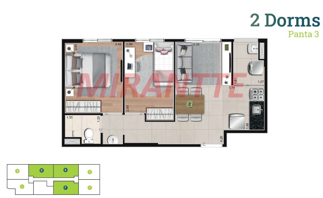 Apartamento de 38m² com 2 quartos em Vila Ré