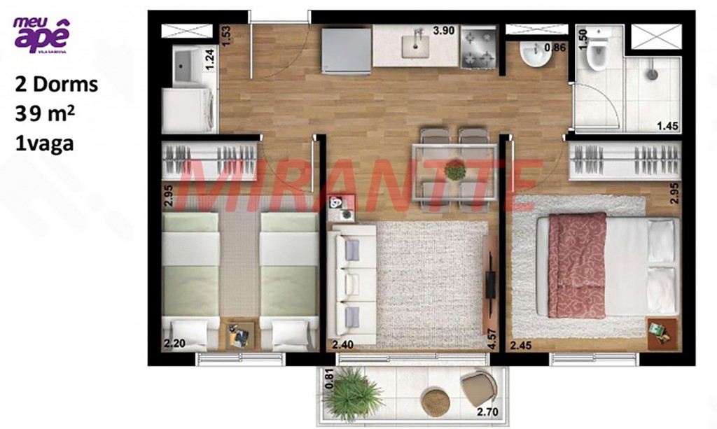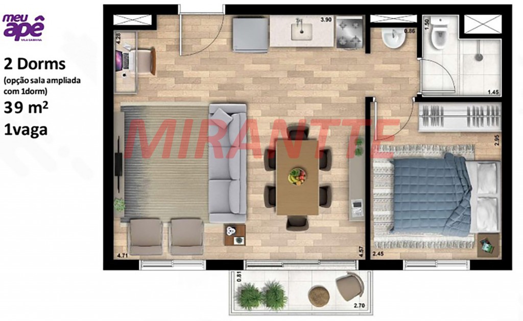 Apartamento de 39m² com 2 quartos em Vila Sabrina