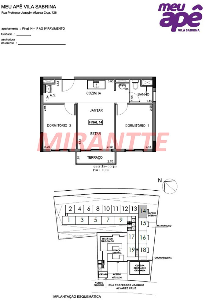 Apartamento 114 no 1º andar. O empreendimento possui as seguintes áreas comuns: salão de festas com espaço gourmet, fitness com área de apoio externa, brinquedoteca, playground, churrasqueira, praça central, estar sob pergolado e lavanderia coletiva, localizados no térreo. O edifício ainda possui 2 subsolos destinados às vagas cobertas e descobertas, quadra recreativa gramada, bicicletários e áreas técnicas no 1o subsolo e, pet place, bicicletário e áreas técnicas no 2o subsolo. Próximo aos acessos das rodovias Fernão Dias e Dutra e do Shopping Internacional de Guarulhos.