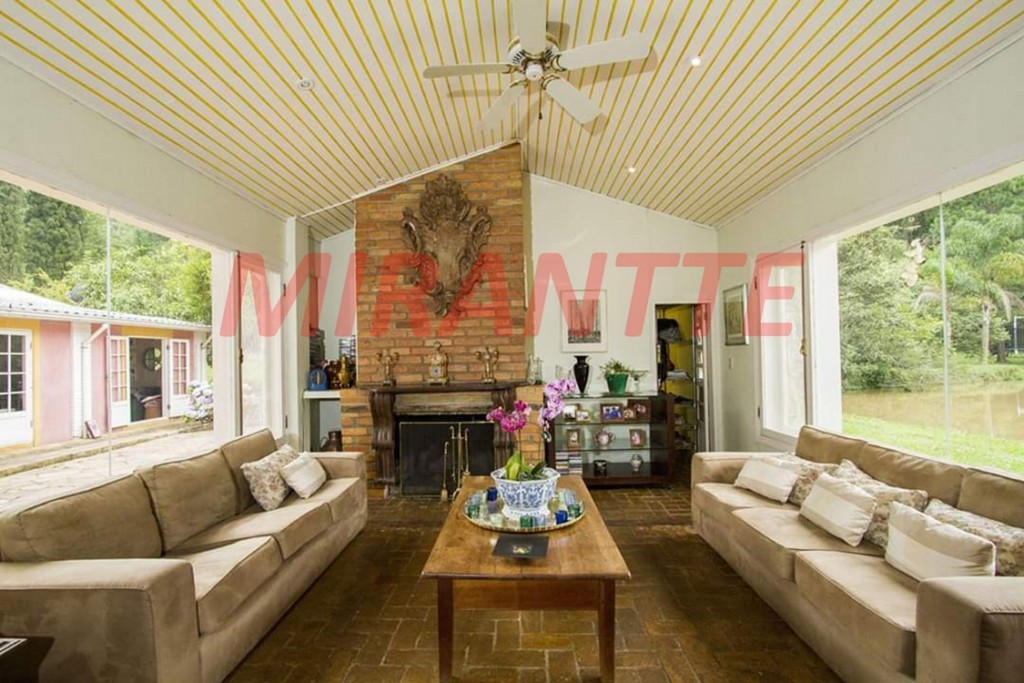 Maravilhosa propriedade na Serra da Cantareira, em bairro fechado e monitorado por câmeras, com de 15.000 metros quadrados de área verde, beirando um lindo lago. dando ao imóvel um visual incrível e exclusivo.A casa principal tem 4 suítes, sala para dois ambientes com lareira, lavabo e cozinha, com uma metragem de 400 metros quadrados. No mesmo terreno um enorme galpão de 400 metros quadrados, em seu imenso jardim teremos, lago, piscina, horta, bosque, cascata e riacho. Realmente um pedaço do Paraíso! O lote ao lado do mesmo proprietário, de 1000 metros quadrados tem uma nina dágua com caixa de 100.000 litros e outra de 20.000 litros que abastece toda a propriedade. O proprietário trabalha com dois tipos de locação, mensal e temporária, sendo que a locação temporária está atribuída ao final de semana, entrada na sexta e saída no domingo; sendo o valor estipulado em R$ 3.000, ideal para quem pretende locar para, filmagens, seção de fotografia e eventos. Em caso de locação mensal o proprietário esta disposto a conversar sobre sub locação da propriedade. O lugar é realmente fantástico, vale a pena conhecer!