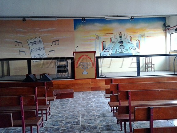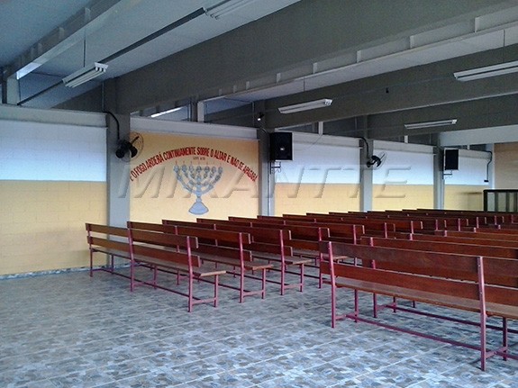 um salão adaptado para uma igreja com púpito, bancos, banheiros masculinos e femininos dentro do salão já inclusos, de preferência ser alugada para igreja evangélica de qualquer dominação, como já tem sido alugada. A entrada para igreja é indivídual do prédio.