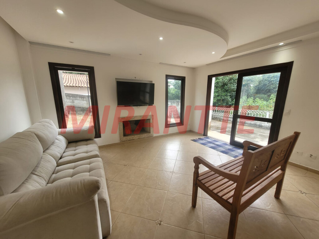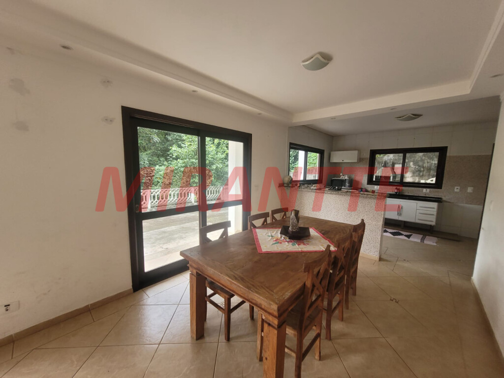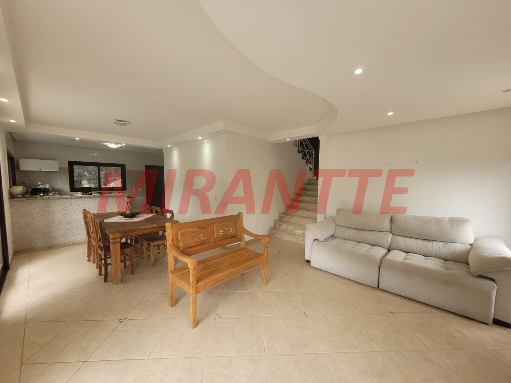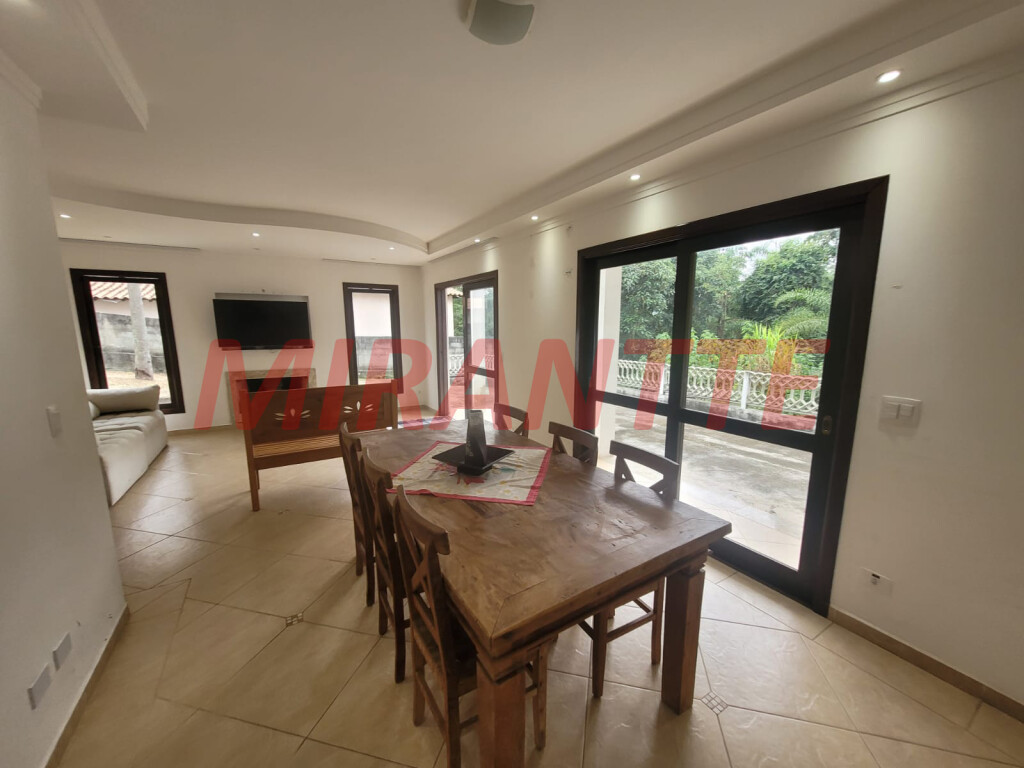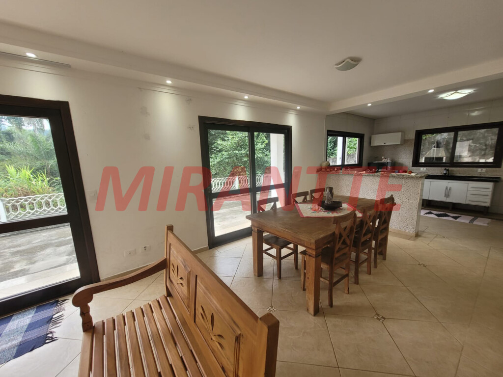 Sobrado Mobiliado para Locação em Condomínio na Serra da Cantareira Esse condomínio é localizado em uma extensa área de preservação ambiental com lago, deck e a presença de diversos animais como macacos bugios, tucanos, esquilos, bichos preguiças e outros. O condomínio conta com salão de festas com capacidade para 300 pessoas, churrasqueira, forno à lenha e amplo estacionamento. A segurança é monitorada com câmeras e rondas por 24 horas. Com 166,30 de área construída e um terreno de 1.592 m² com muito verde. A casa conta com 03 dormitórios, sendo 01 suíte com armário. 01 banheiro social com box Blindex. Sala para 02 ambientes com lareira dando charme e um ar aconchegante para o ambiente. Cozinha americana planejada, com fogão e gaeladeira. Lavanderia coberta e despensa. Lavabo e quarto escritório. Sotão com ambiente multifuncional para ser usado como depósito. Entrada lateral, área da churrasqueira, amplo quintal rodeado de área verde. Vagas cobertas para 02 carros e mais de 05 vagas descobertas. Portão automático. Venha morar no sossego da Serra da Cantareira, com muito conforto, tranquilidade e ar puro.