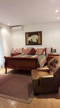 4 suítes com closet e varandas com portas/persianas em aluminio, com acionamento automático. Sala estar com lareira a gás, revestida em mármore travertino Sala de jantar com jardim de inverno Sala de TV Lavabo com projeto personalizado Cozinha com mármore tipo exportação Despensa Área de serviços Escritório Espaço Gourmet com salão de festas e banheiro Piscina com borda infinita Portas e batentes personalizados Janelas em alumínio com persianas acionamento automático Quarto e banheiro de serviço Deposito Garagem coberta para 6 carros Salas e cozinha com porcelanatos de 1,20 retificados Banheiros com porcelana tos de 0,60 retificados
