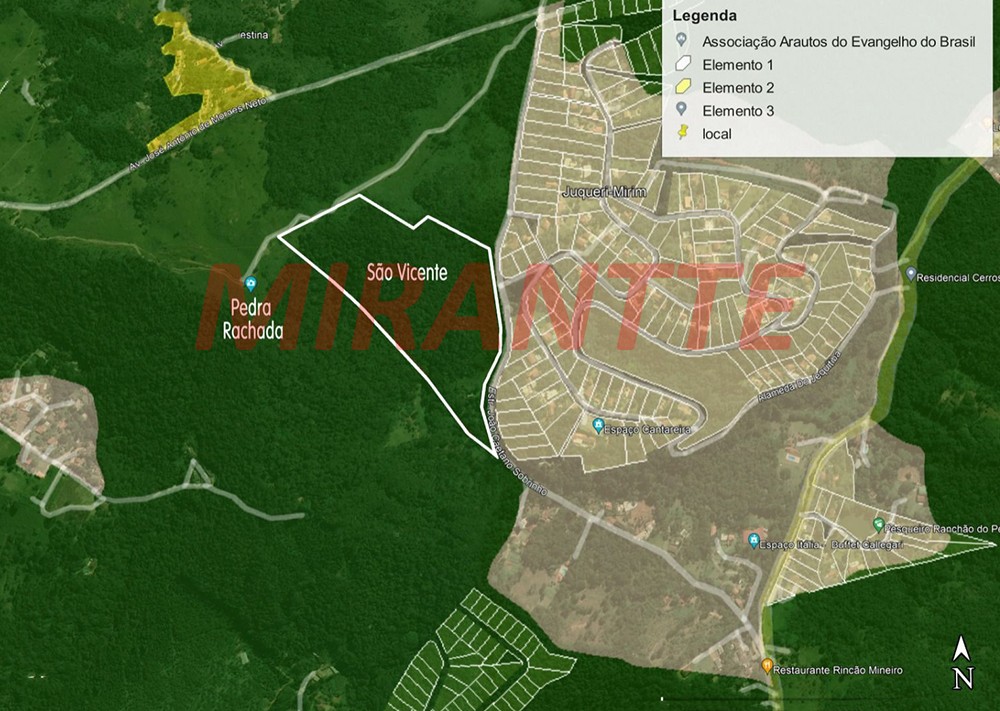 Terreno em Juqueri-Mirim, ótima localização, a 300 metros da Estrada da Roseira, entrada logo após a reta dos restaurantes da Cabana, Este endereço inicia na entrada do Espaço ITÁLIA. O terreno é na sua maioria em pequeno aclive, tendo uma pequena declividade também á esquerda de quem adentra ao terreno. A divisa a esquerda do terreno é constituída por um riacho ao seu longo, desde a nascente existente na parte superior do terreno. O terreno tem uma forma irregular, porem em sua imensa maioria visto de cima parecido com um retângulo (Veja Foto), e também tem o levantamento Planimétrico do Sitio São Vicente, e matricula atualizada.